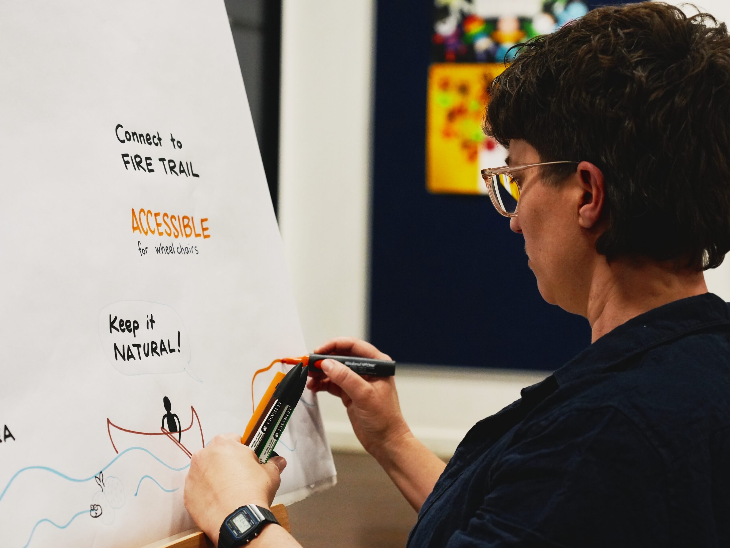 - The Synthesis: Our artist works live, visualising the responses into a cohesive, large-scale mural, weaving individual thoughts into a collective story so everyone’s contribution is captured.