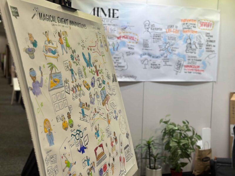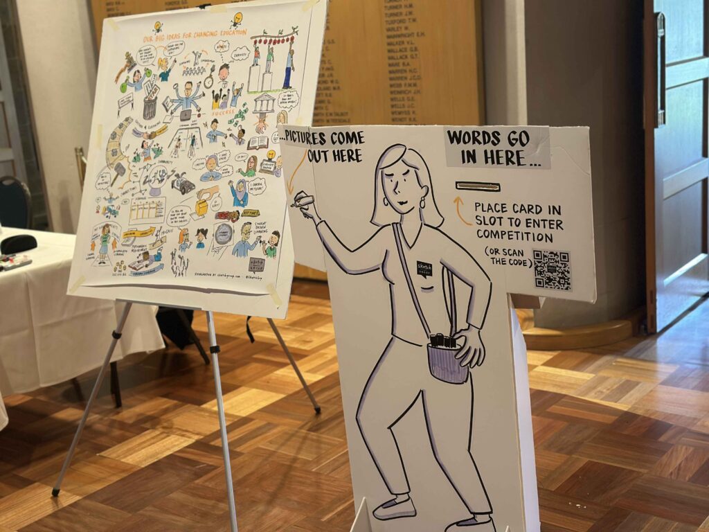 - Democratise the Conversation: Keynotes are top-down; IdeaSketch™ is bottom-up. By asking a “Big Question” via prompt cards, we capture the diverse wisdom of the crowd, ensuring the quietest voices are visualised right alongside the loudest speakers.
