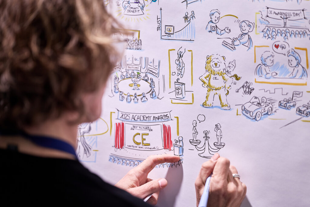 Transform your next event into a truly collaborative experience with IdeaSketch™. We bridge the gap between speakers and audience by capturing your attendees’ insights, questions, and voices in real-time through vibrant, live illustrations.